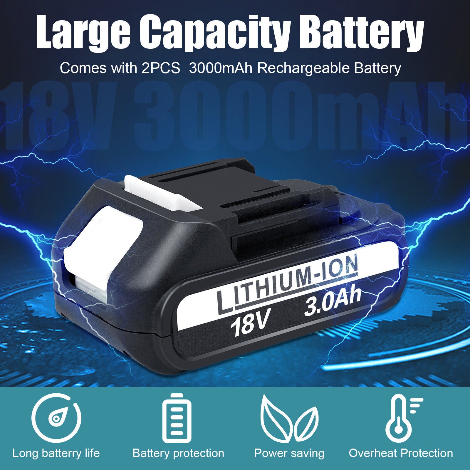 Equipped with two 18V 5500mAh lithium batteries, you’ll get extended runtime and consistent cutting power. The built-in overload and temperature protection ensures safety and long battery life.