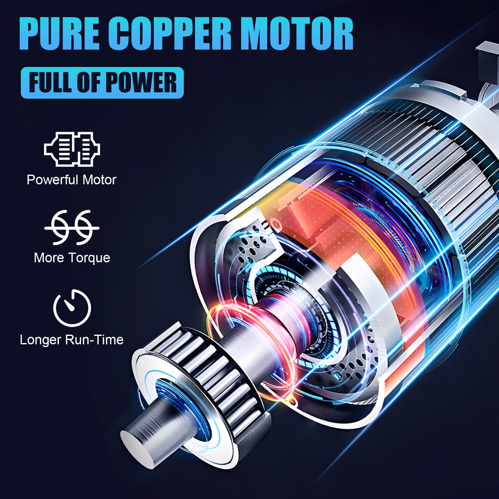 The upgraded copper wire motor delivers more torque and runtime, while the triple safety system gives you peace of mind: